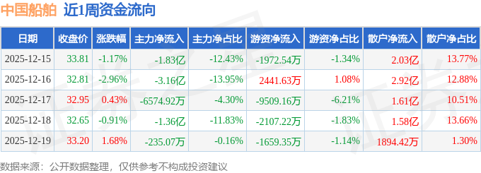 沪深股通持股方面,截止2025年12月19日收盘,中国船舶沪股通持股数为1.75亿股,占流通股比为390.0%。